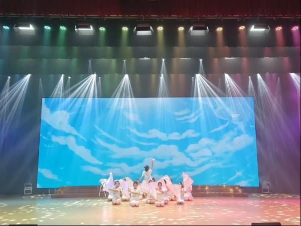 本次展演在热力四射的开场舞中拉开序幕。节目形式多样,内容丰富,涵盖了“唱、跳、弹、画”等多项专业技能。既有音色饱满、情感充沛的儿歌表演唱也有极具童心童趣的幼儿舞蹈表演,还有轻快活泼的现场钢琴曲弹唱。最特别的是绘画技能节目,把古筝、绘画和舞蹈结合,古筝声起,如同流水潺潺、悠扬而深邃,舞者们的身姿也随之轻轻摇曳,同时同学们拿起手中的画笔开始作画。音乐结束时,一副《千里江山图》映入大家的眼前,整个现场的氛围瞬间被点燃,掌声热烈而持久。