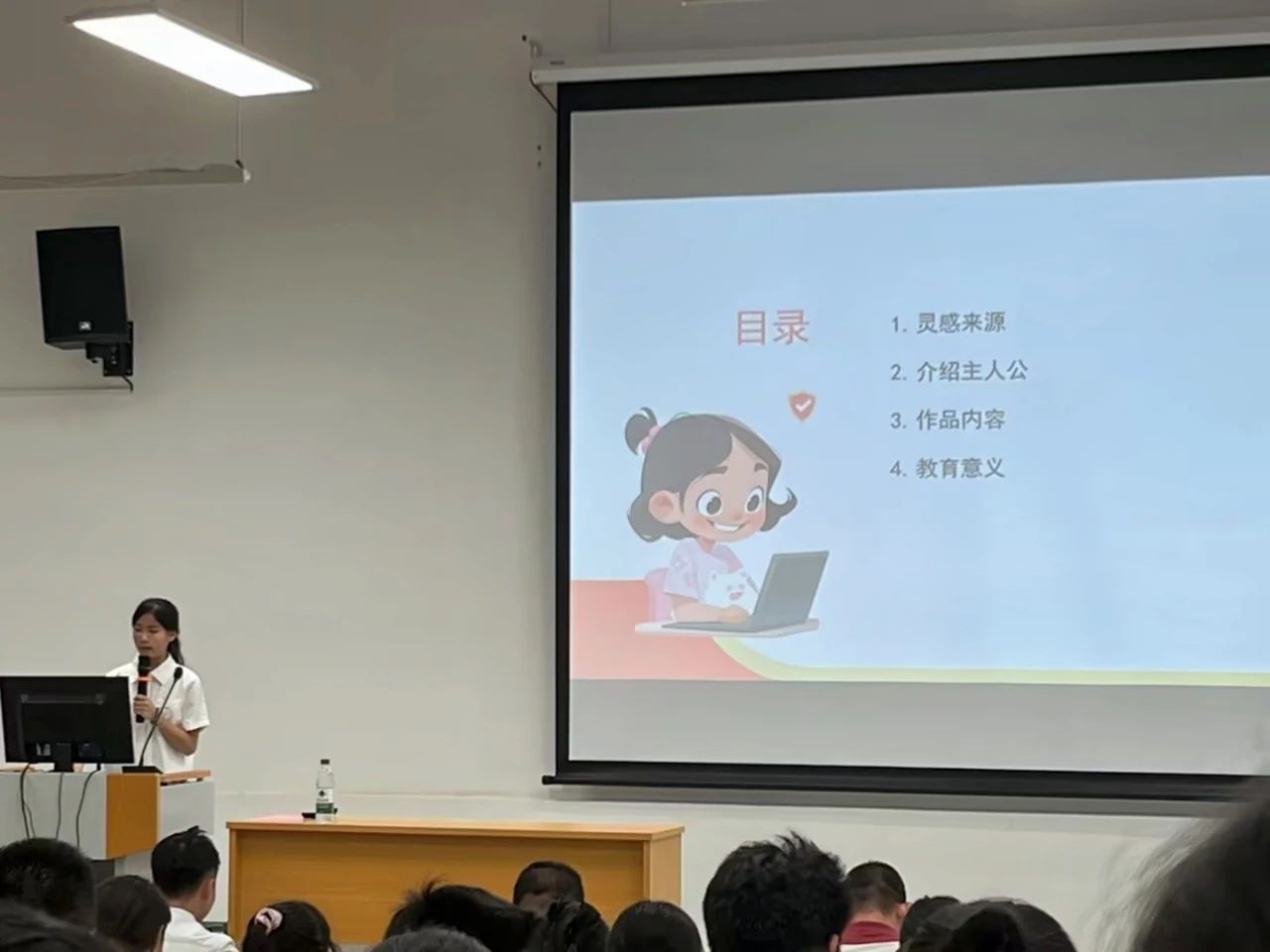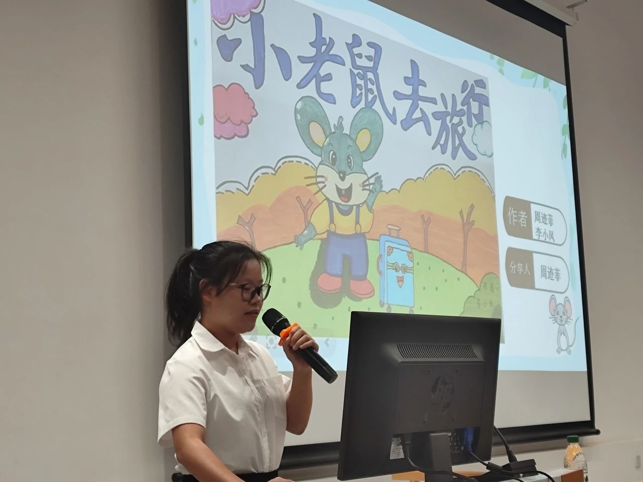 此外,学前23(16)班曾纤纤同学还分享了绘本《我近视了》;学前23(25)班周迹菲同学分享了和李小凤同学一起创作的绘本《小老鼠去旅行》;学前23(35)班的兰柳莹同学分享了绘本故事《毛毛虫大变身》;学前23(35)班邢韵同学分享了绘本《不完美的小熊》;学前23(14)班韦静露同学分享了绘本《如果我是一粒种子》;学前23 ( 18 )班卢钰婷同学分享了故事《Loopy 奇遇记》;学前23 ( 18 )班卢钰婷同学分享了故事《Loopy 奇遇记》;学前23(29)班蓝罗琳同学分享了幼儿故事文学《巴娜历险记》。分享会精彩纷呈,赢得现场师生阵阵掌声。