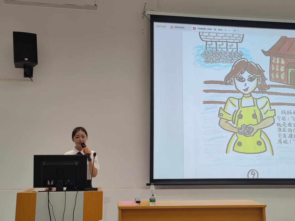 学前22(11)班蒲明霞同学分享了绘本《我的“蚝”朋友》,她说,故事的灵感来源于钦州本地特产大蚝?;姹就ü杪瓒源篁旱慕樯?,为小朋友们科普了生蚝的外形特征、养殖过程、食性、营养价值等相关知识。