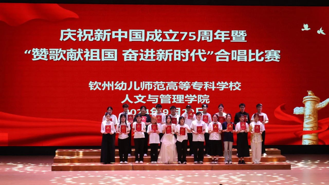 为庆祝中华人民共和国成立75周年,讴歌新中国光辉历程和伟大成就,激发全院师生爱党爱国爱校的炽热情怀,展现积极进取、奋发有为的精神风貌,9月29日晚,人文与管理学院在学校报告厅举行庆祝新中国成立75周年暨“赞歌献祖国 奋进新时代”合唱比赛。叶建华、张滨、覃章驰、黄丹、黄青、蒋丽娜、梁德战等7位老师担任本次比赛的评委,学院师生代表共800余人到场,一起聆听这场喜迎国庆、礼赞祖国的视听盛宴。