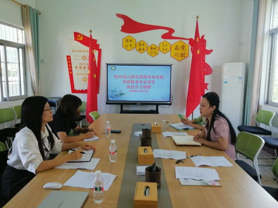 为深入了解学生的实习情况,加强岗位实习质量监控,深化与实习单位的合作交流,促进实习生就业,10月14日-15日,学前教育学院院长梁艳珍带队走访了钦州幼专附属幼儿园、钦州市实验幼儿园、钦南区第二幼儿园等6所合作实习单位,了解实习生实习情况,对实习生进行指导。学前教育学院党支部书记、副院长覃年升、2022级集中实习带队辅导员以及教秘参与本次走访。