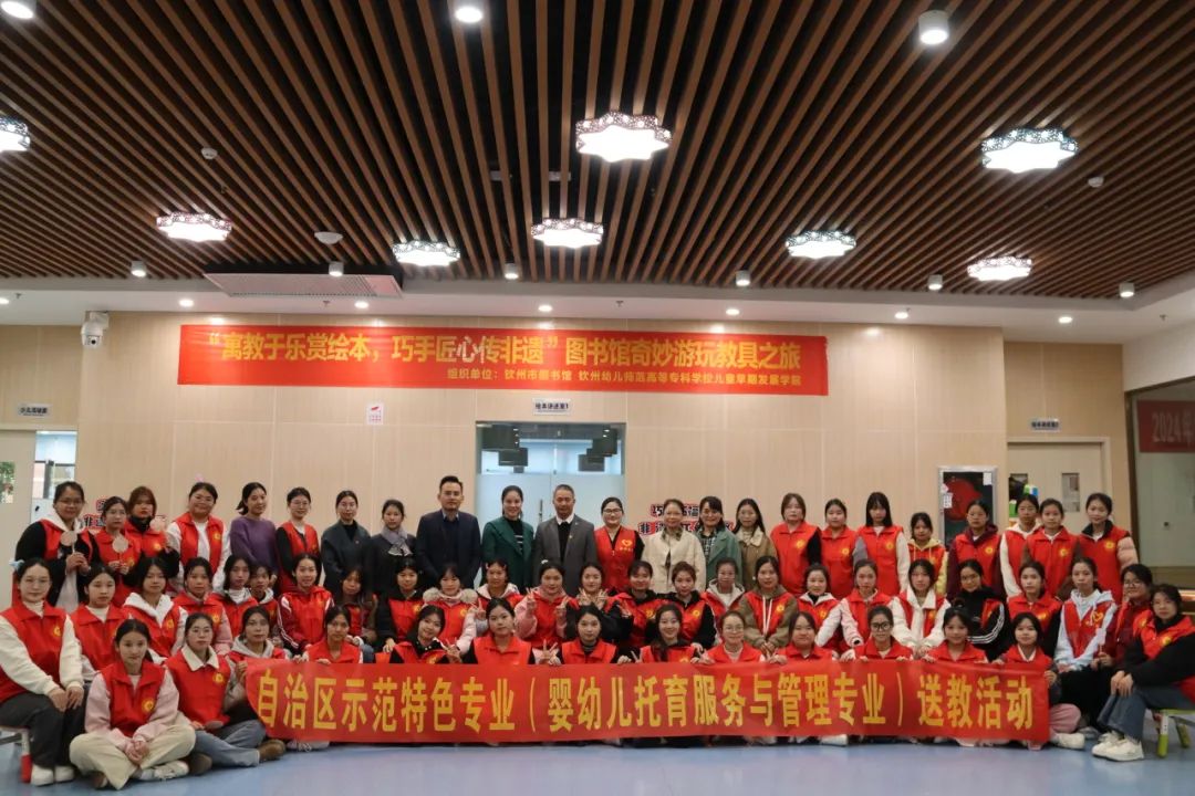 为提升学生的职业素养、创新创业能力,促进毕业生积极就业,提高示范特色专业的社会服务能力,推进校地合作、党组织结对共建工作,12月21日,我校儿童早期发展学院联合钦州市图书馆在市图书馆二楼少儿馆联合举办党建共建暨“寓教于乐赏绘本,巧手匠心传非遗”艺术体验活动?;疃寡肓饲罩菔泄媳Ρ赐杏?、诚金学苑、市第二幼儿园等校外实践基地单位的家长和小朋友们。