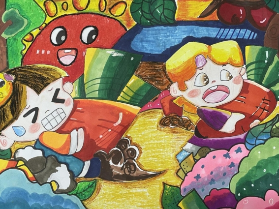 比赛现场,选手们围绕“劳动最光荣:小萌娃的蔬果乐园大丰收”“端午节:宝贝的奇幻龙舟大冒险”“念师恩:感恩派对”三大主题展开创作。他们或凝神思索构图,或挥毫泼墨着色,运用水彩、蜡笔、彩铅等多种绘画工具,将儿童画的童趣与艺术深度巧妙融合。每一幅作品不仅技法生动,更通过对色彩、场景的独特诠释,细腻呈现出儿童丰富的内心世界,完成了一场别开生面的艺术探索之旅。