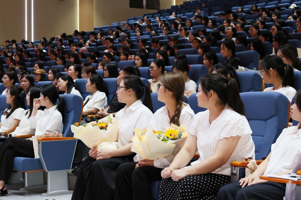 2025届毕业班辅导员廖诗琪作为教师代表深情寄语毕业生:“愿你们守护好自己的身心健康,勇敢地去想、大胆地去做、做时代的弄潮儿,胸怀家国天下,带着在钦州幼专积蓄的知识、能力和品格,在各自的领域里乘风破浪,成就梦想?!薄案卸髂感S谩裎镏轮?修身立德’的校训塑造我们品格,感恩师长以匠心引领专业成长!”学前教育专业唐雅宁同学代表2025届毕业生坚定表示:“无论成为守护童心的‘孩子王’,还是托育领域的探索者,我们都将用爱心托举孩子的梦想,以专业回应时代召唤,定不负母校培育!”