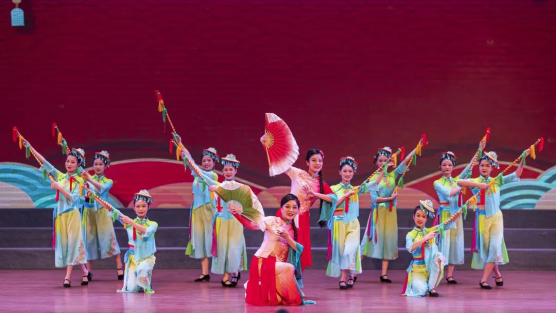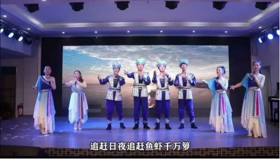 唐书群老师带学生们创排的节目——采茶说唱《喜宴》