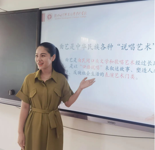 从舞台的追光灯中走上三尺讲台,从面对成千上万的观众到求知若渴的双眼,从要求专业技术能力的艺术领域到要求综合素质更高的教育领域,她内心充满忐忑,不仅要接受心理上的落差,还要接受更多新的挑战。第一次写教案,虚心地向同事请教;第一次走上讲台,故作轻松的与学生们分享自己的经历;第一次参加说课比赛,比上舞台演出还要紧张;第一次申报课题,熬了好几个晚上查找资料……
